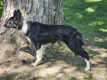 Moss is a super boy with a fantastic temperament! Everyone that meets Moss, loves him. Dogs and people. He has what everyone calls a harem. All the girl dogs just love him, even the ones that don’t like other dogs. He has many dogs that owners like him to be in line with at the trial as he makes them feel at ease. Moss goes with me when I dog sit to play with the pack. He truly gets along with everyone. He loves to work and please. A weakness of his would be doesn’t show you that his is tired. I've learned I have to monitor work time as he would keep going if I asked him to, no matter what. Fantastic temperament, great focus, drive, biddable, athletic, friendly, sweet and easy to live with. He has an off switch. Loves his people. Loves other dogs. Moss has trick titles, and many agility titles. He does AKC, USDAA, UKI and CPE Agility. He also has also trains in disc and dock diving, he loves it but is quite a trip for us or we would do it more. He has done just a little herding as we do not have sheep at this time. All Moss’s brothers and sisters do herding. Moss has performed tricks, Disc and agility for a crowd promoting NEBCR. We do shows to let people know all that a BC can do, the crowds don't bother him at all! Moss’s favorite thing is to play with his Mom!