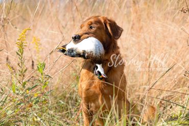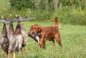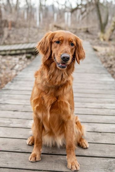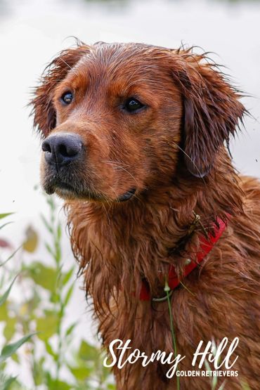 Lovingly known as "Red" at home, our boy is the consummate gentleman. Adhering closely to AKC standards for coloring, conformation, and body type, Red is a stunning example of what a field-bred Golden Retriever is meant to be. Weighing in at 65 pounds of solid muscle, he is a compact, athletic machine with both the drive to work and the heart to love.
